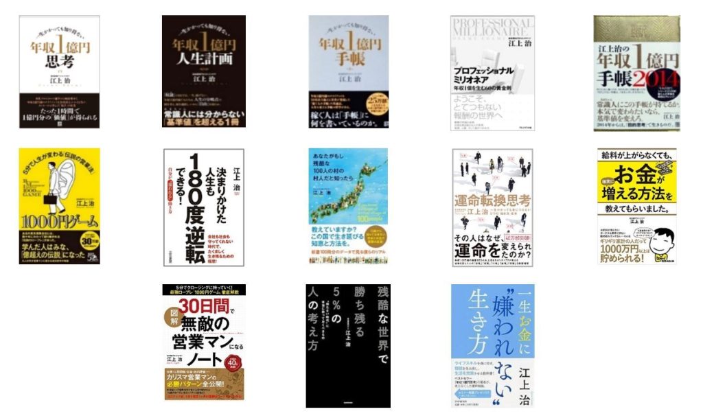 - 『江上治の年収1億円手帳 2014年~』(経済界)『1000円ゲーム』(経済界)