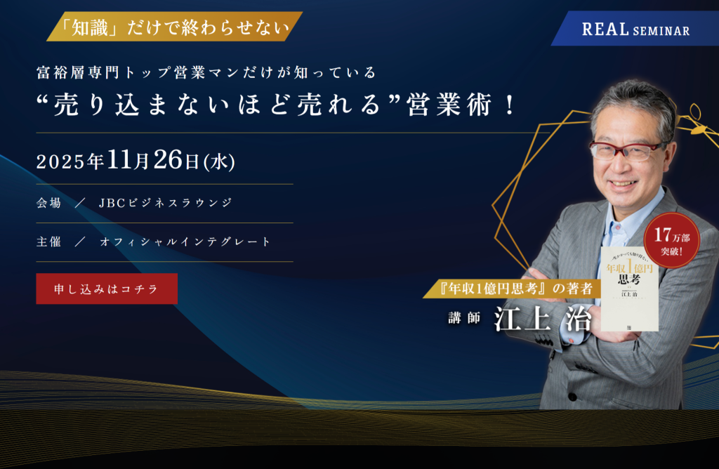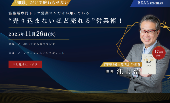 ◇富裕層専門トップ営業マンだけが知っている“売り込まないほど売れる”営業術! 開催のご案内